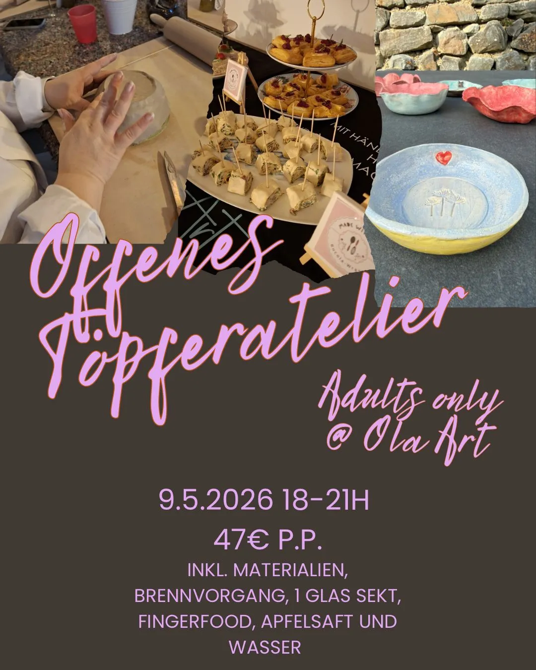 Termin: Am 09.05.2026 von 18–21 Uhr bieten wir einen besonderen Adults only Töpferabend ein.